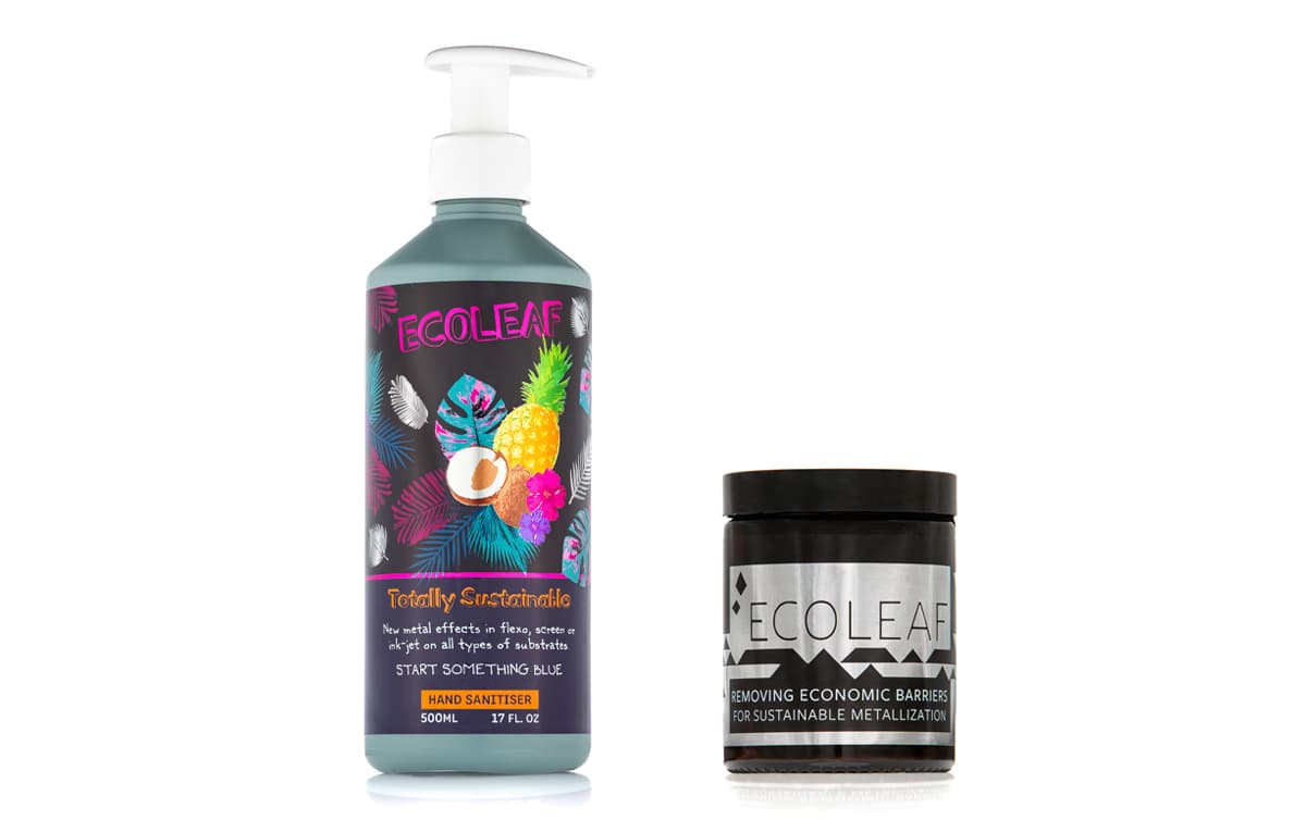 ECOLEAF is a new category of metallisation for the Graphic Arts. This is a sustainable solution for premium packaging and an alternative to Hot and Cold foil. The new technology is used to embellish labels, folding cartons, flexible packaging and more.